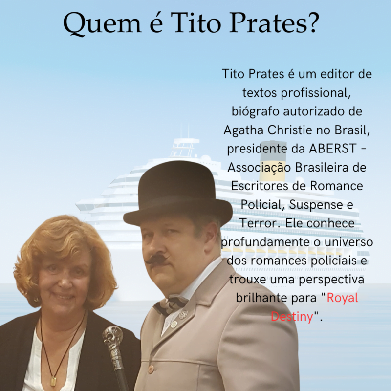 Tito Prates é editor de textos profi ssional pela LabPub, biógrafo autorizado para língua portuguesa no Brasil de Agatha Christie pela Agatha Christie Ltd e The Christie Archive Trust, Presidente da ABERST – Associação Brasileira de Escritores de Romance Policial, Suspense e Terror.